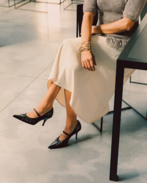 Allegra Nappa è una décolleté in morbida nappa nera con cinturino elasticizzato, pensata per unire eleganza e funzionalità. Il tacco di 75 mm accompagna con equilibrio la falcata, mentre la suola in cuoio con inserto in gomma assicura stabilità e comfort in ogni occasione. Un modello versatile, essenziale nello stile e facile da interpretare.