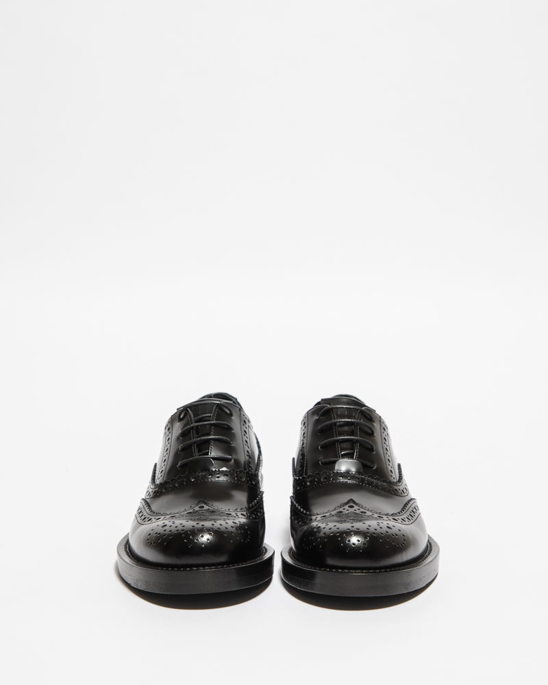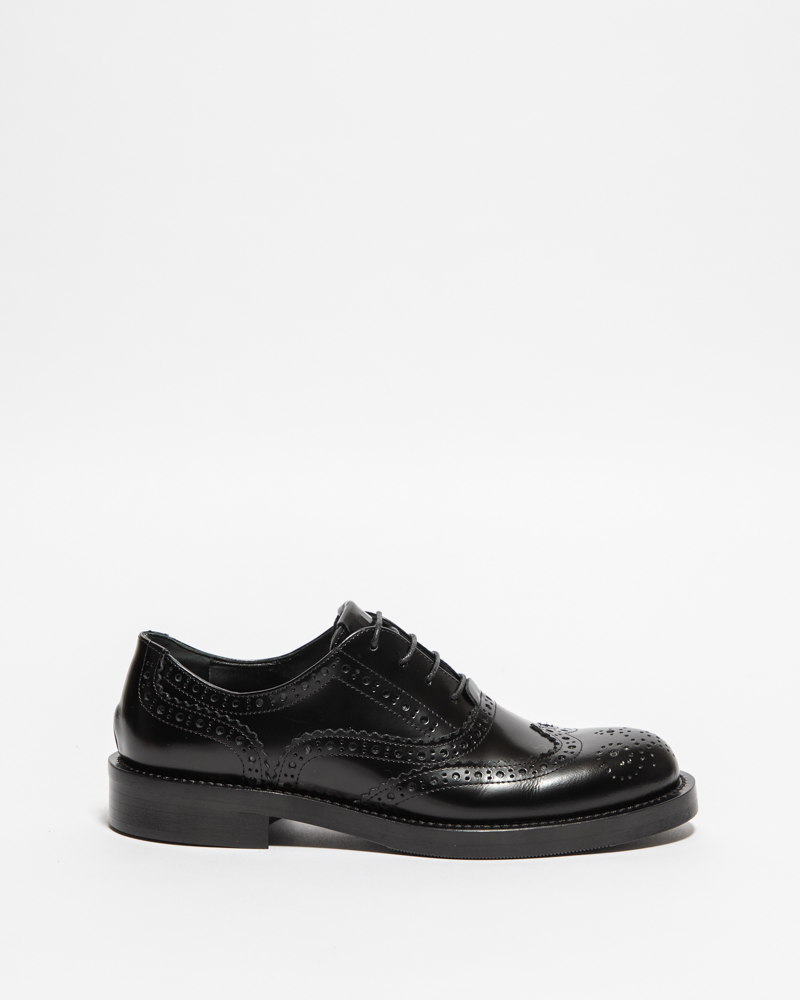 L’Oxford più classico incontra l’eleganza contemporanea. Realizzata in brushed leather nero, la Porter si distingue per le sue linee essenziali e la costruzione impeccabile. La suola da 2 cm assicura comfort e stabilità, senza rinunciare a un profilo raffinato.